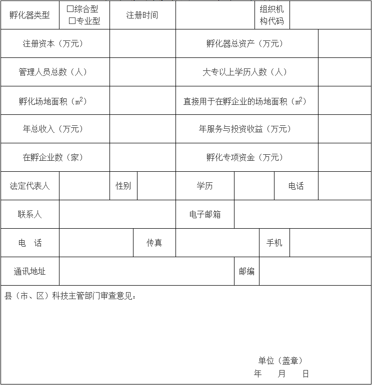 金華市級科技孵化器認(rèn)定申請表