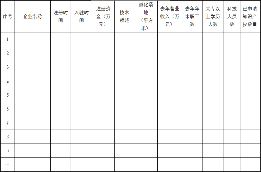 在孵企業(yè)情況匯總表