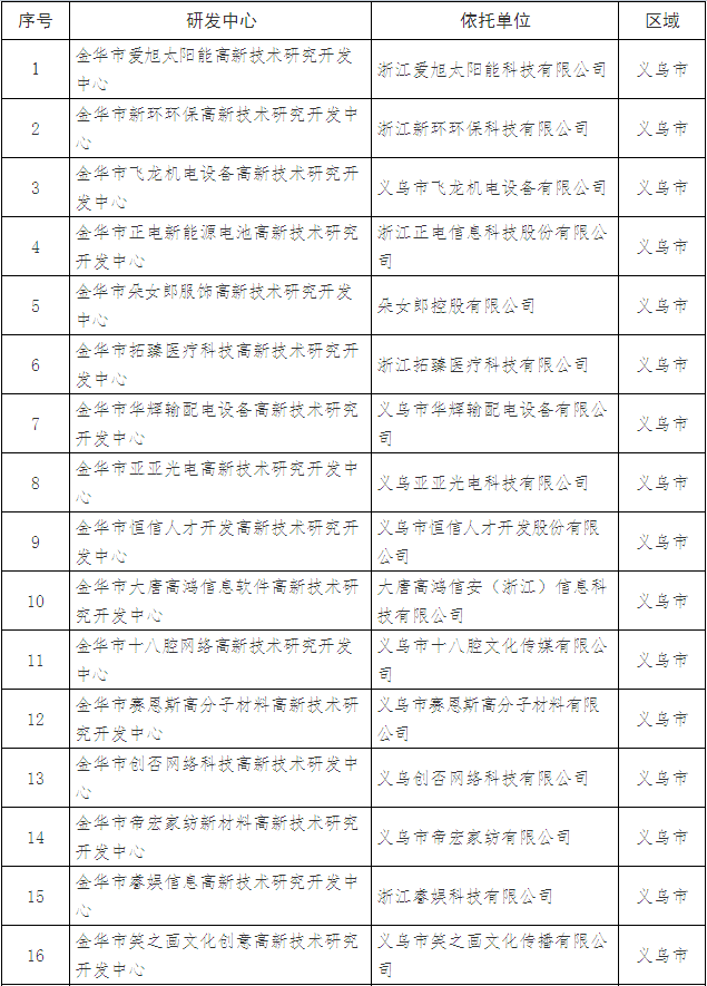 附件:2018年第三批金華市高新技術(shù)研究開(kāi)發(fā)中心名單