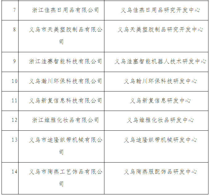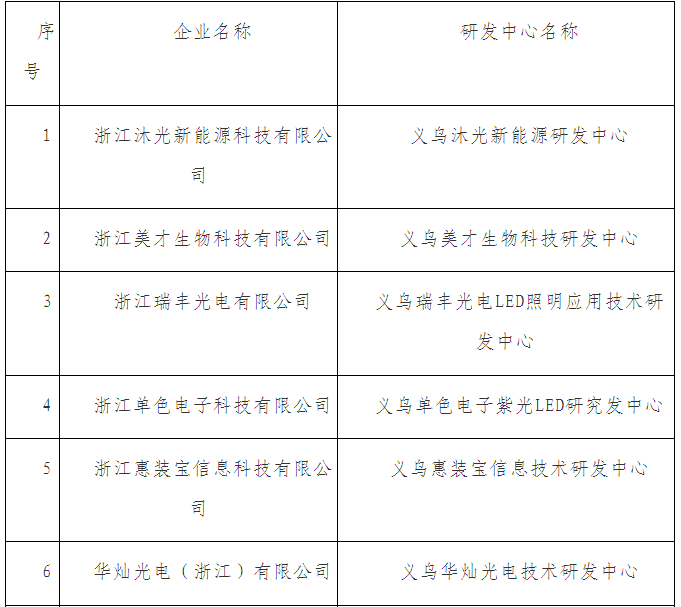 根據(jù)義烏市人民政府辦公室《義烏市“小微企業(yè)三年成長(zhǎng)計(jì)劃”實(shí)施方案(2015-2017)義科〔2016〕17號(hào))和金華科學(xué)技術(shù)局《關(guān)于科技型小微企業(yè)三年成長(zhǎng)計(jì)劃統(tǒng)計(jì)有關(guān)問(wèn)題的通知》、“關(guān)于重新印發(fā)《義烏市科技企業(yè)和研發(fā)機(jī)構(gòu)認(rèn)定、復(fù)核與推薦實(shí)施辦法》的通知”(義科〔2017〕15號(hào))?,F(xiàn)公布以下企業(yè)為2017年第二批市級(jí)科技企業(yè)、市級(jí)研發(fā)機(jī)構(gòu):