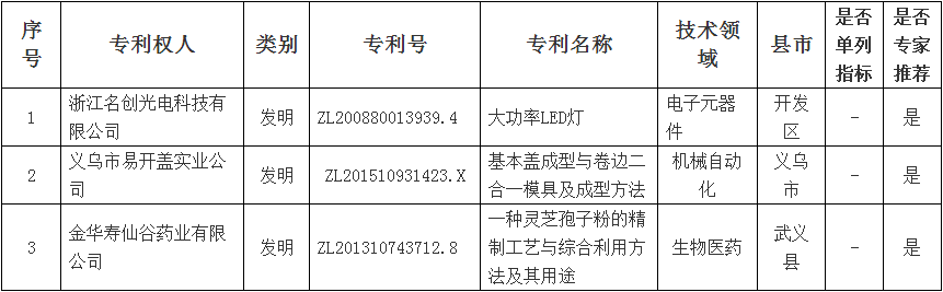 附件:2018年浙江省專利獎(jiǎng)金華市擬推薦項(xiàng)目名單