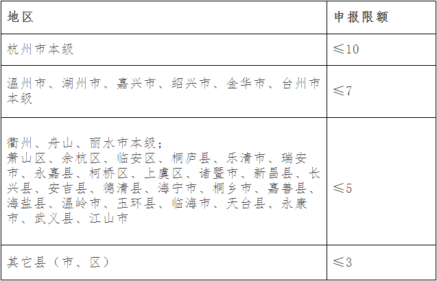 (三)實行限額推薦。綜合考慮各地裝備制造業(yè)企業(yè)數(shù)量、規(guī)模、結(jié)構(gòu)及特色情況,各地推薦申報首臺套產(chǎn)品實行差異化限額分配。為體現(xiàn)扶優(yōu)原則,對國務(wù)院通報表彰的2017年落實有關(guān)重大政策成效明顯地區(qū)、國家新型工業(yè)化裝備制造產(chǎn)業(yè)示范基地、浙江省高端裝備制造業(yè)特色基地申報名額適當(dāng)增加,其中對浙江省高端裝備制造業(yè)特色基地增加的名額要求用于與特色基地主業(yè)相關(guān)產(chǎn)品的申報。具體名額見附表。