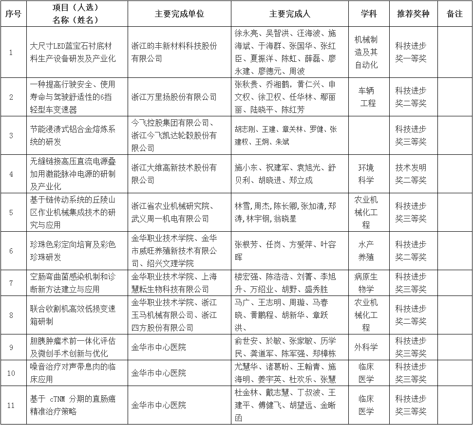 2019年度金華市區(qū)推薦省科學(xué)技術(shù)獎(jiǎng)申報(bào)項(xiàng)目匯總表