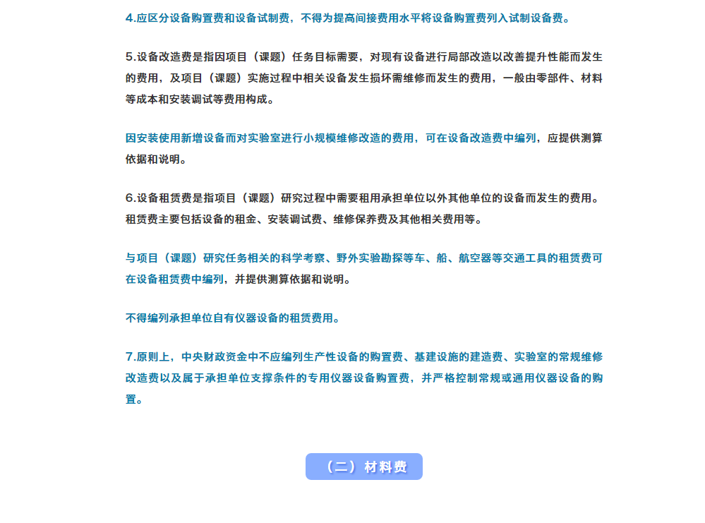 設(shè)備費:是指在項目(課題)實施過程中購置或試制專用儀器設(shè)備,對現(xiàn)有儀器設(shè)備進行升級改造,以及租賃外單位儀器設(shè)備而發(fā)生的費用。